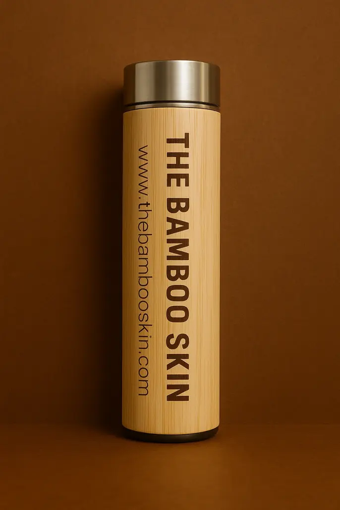 The Bamboo Thermos Bottle by The Bamboo Skin is the perfect blend of eco-friendliness and functionality. Crafted from premium bamboo with a sleek stainless steel rim, this thermos bottle is designed to keep your beverages hot or cold for hours. Featuring a leak-proof design and durable stainless steel cap, it’s ideal for on-the-go hydration. The natural bamboo texture and minimalist branding offer a clean, stylish look, making it the ideal companion for your daily routine or outdoor adventures. Keep your drinks at the perfect temperature, all while making a sustainable choice.