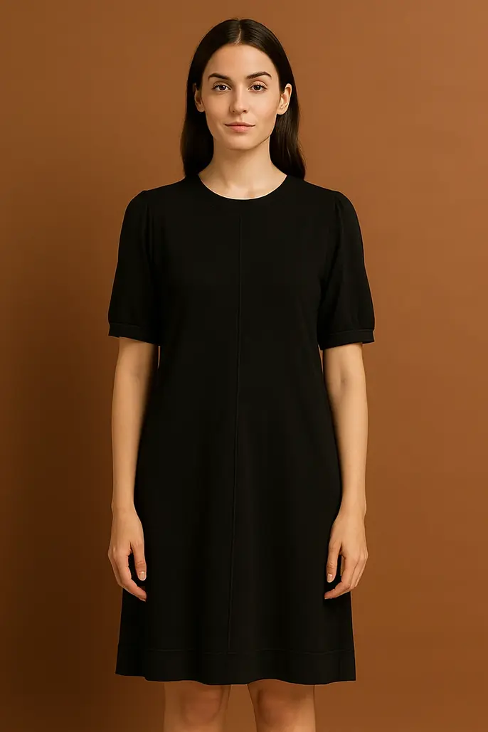 Sleek, simple, and sustainable—the Classic Black Bamboo T-Shirt Dress is a timeless wardrobe staple. Designed with soft puff sleeves and a flattering straight fit, this knee-length dress is made from breathable, ultra-soft bamboo fabric. Whether you're heading out or staying in, it delivers effortless style and all-day comfort. Ethically crafted for women who love clean silhouettes and eco-friendly fashion.